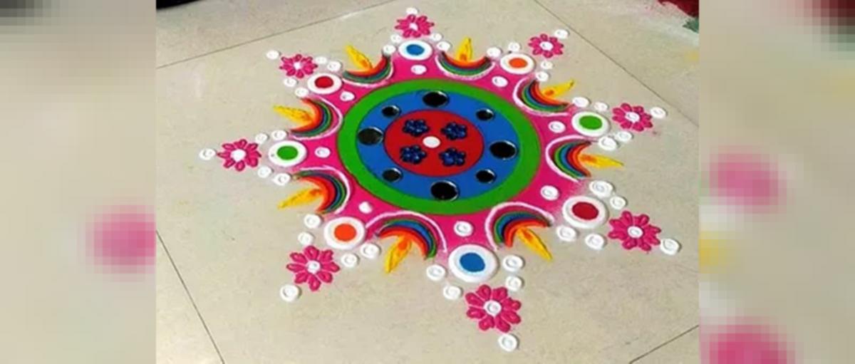 Simple Welcome Round Rangoli Design - Rangoli, rangolis, fancy, colorful, beautiful, kolam, welcome, home, portico, ganesh rangoli, diwali rangoli, pongal rangoli, innovative, creative, simple rangoli, flower rangoli, christmas rangoli. Simple Welcome Round Rangoli Design - The iris is merely a suggestion.